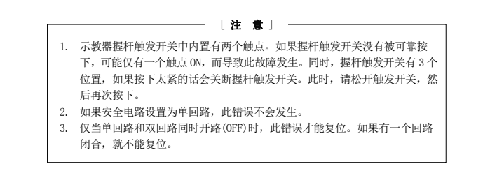 1.示教握杆触发开关线路有断路、短路或接地故障的现象。