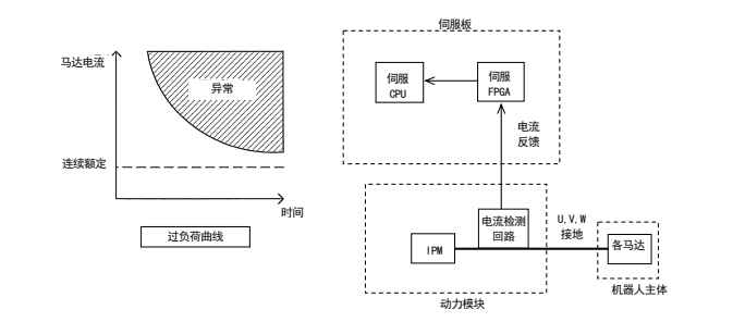 根据机器人手臂姿态,可能会马达三相的一相流过大直接电流。如果这样状态持续,即使马达过载不发生,也导致电线烧毁。