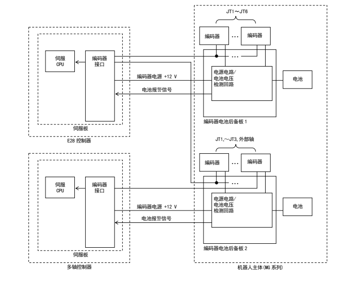 2.当错误信息中显示的编码器后备板电池跌落到+3.3 V以下时,请迅速更换电池。